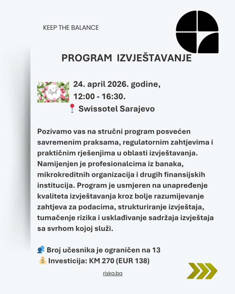 "Upravljanje rizicima i usklađenost nisu paralelne linije – one se ukrštaju u tački odgovornosti. Prava snaga kontrolnih funkcija dolazi do izražaja kada djeluju koordinirano, razmjenjuju uvide i zajedno čuvaju integritet poslovanja."
